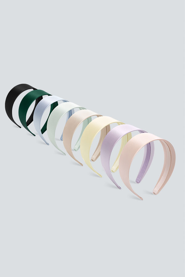 - Contrast Silk Headband – soft, wide, and comfy. Features a silk elastic band that protects your hair. Made with 22-momme silk.
