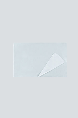 Neatly folded MANITO Authentic Silk Flat Sheet in light blue, highlighting fine stitching. Baby Blue