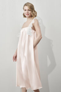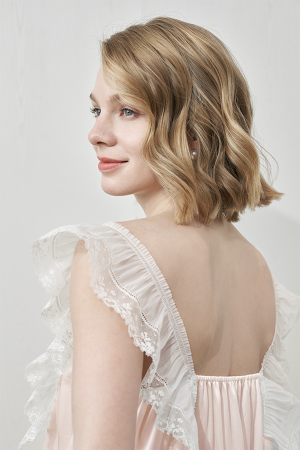Delicately sculpted with intricate lace that traces the collarbone like a sketch, the Angel Collection celebrates the art of effortless allure. The A-line silhouette creates a flattering effect, while gathered stitching detailing at the chest shows innocence and intrigue.