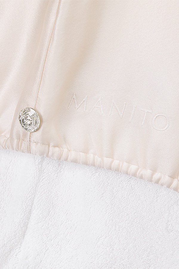 Crafted for cloud-like indulgence, this set features a premium 22mm silk-twill bath towel in soft ballet pink with lustrous silk accents. The matching mulberry silk shower cap boasts a snug elastic band, 18mm crystal button, and embroidered logo for effortless elegance.