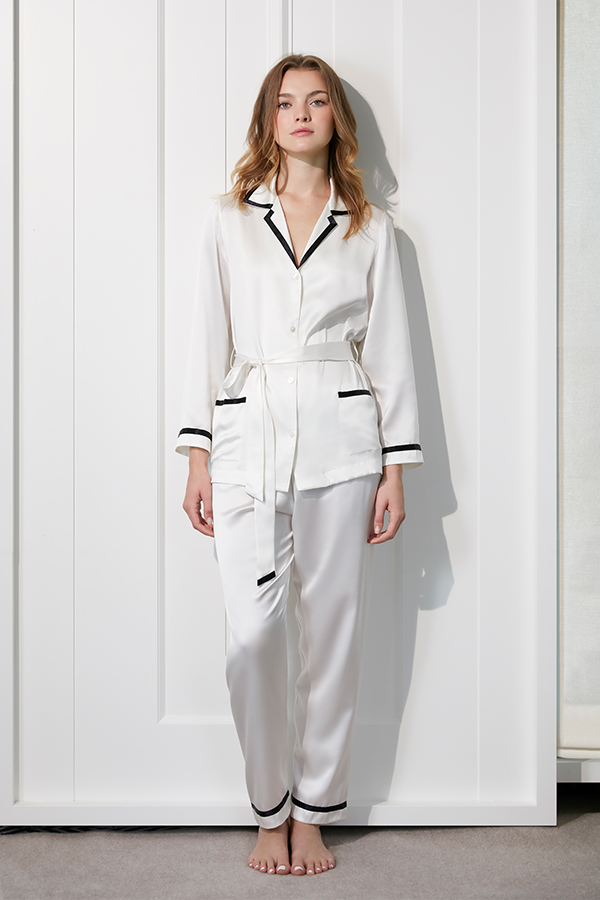 The classic color-blocking lined design drapes on a crisp silhouette and transforms everyday pajamas into the epitome of chicness.