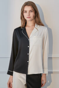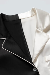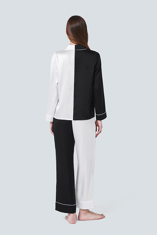 The Contrast Pajama Set has a clean-cut, sleek silhouette created by its loose, comfy fit and crisp suit collar design.