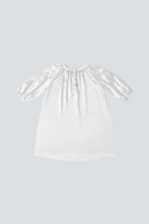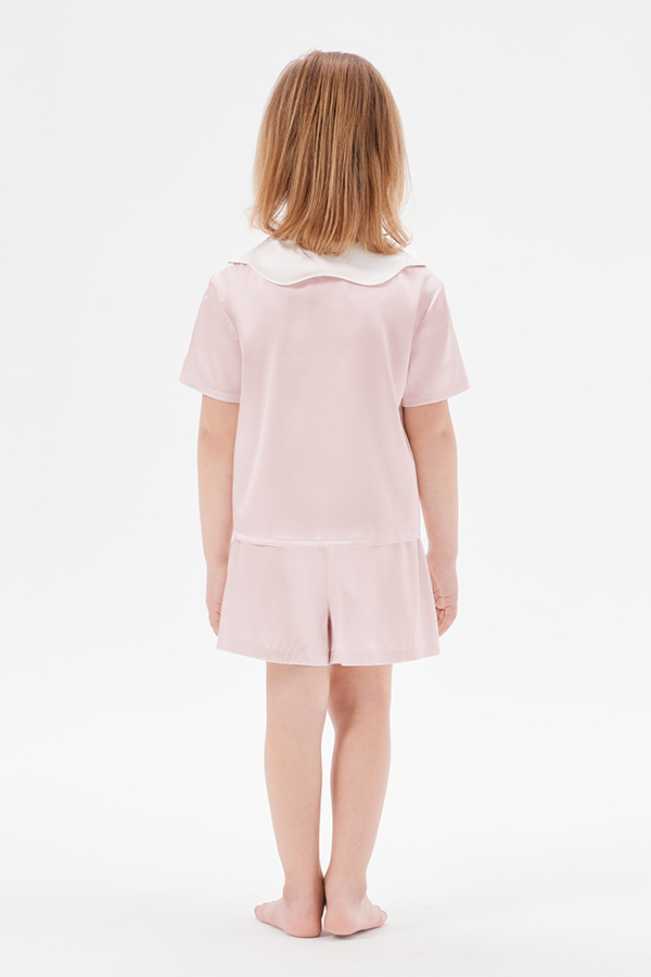 The meticulously selected 28 momme stretch satin is smooth, delicate, and flexible. It protects children’s tender skin while they move about and have fun.