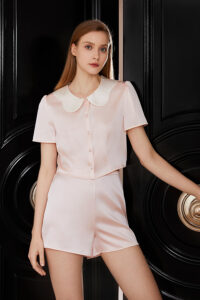 Meticulously selected 28 momme high-quality stretch satin, MANITO Doll Pajama Set has a soft texture and refined luster.