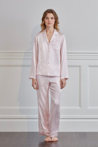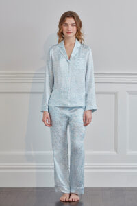 The Gentle Leo Women’s Pajama Set is also adorned with precious mother-of-pearl buttons; its natural luster perfectly compliments the pearlescent sheen of mulberry silk.