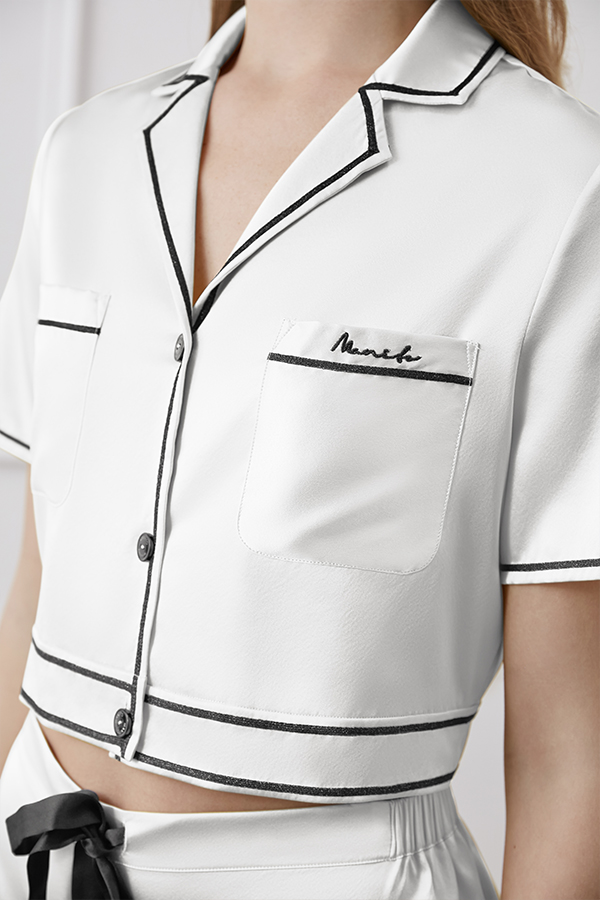 The MANITO Greene collection draws inspiration from the nostalgic 90s aesthetic. Its cropped design is playful and vivacious, yet still offers ample coverage for a range of activities, from outdoor adventures to cozy nights. The bold color blocking and contrasting lines exude a distinct retro vibe, while the black, shimmering material of the MANITO logo on the pocket adds a touch of refinement.