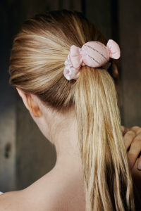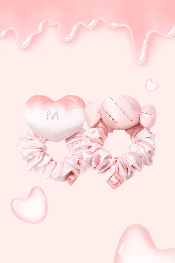 It contains two hair Scrunchies(a heart shape and a candy shape)