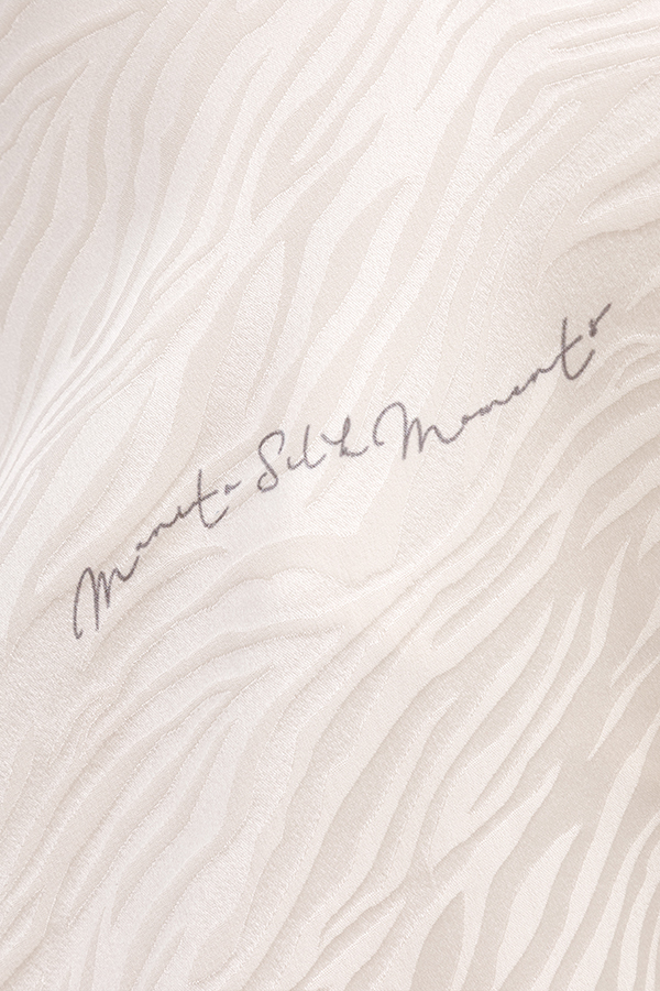 Our Jungle Collection incorporates the MANITO logo with wild boldness and sophisticated elegance. A chic vintage style perfectly executed in 19mm stretch figured satin, the pajama set, playfully decorated with delicate piping, has hugging comforts and a gentle sheen best suiting an independent woman. It is at once classic and innovative in gray-toned creamy white, complimenting any skin tone.