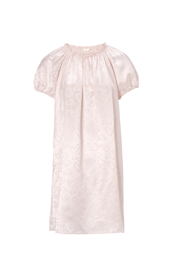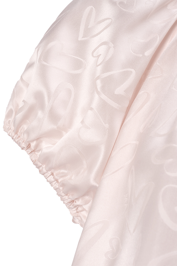 The Loving Collection draws inspiration from the ripples of a love heart, creatively integrating the brand logo. Crafted with jacquard technique, it weaves a reversible texture with heart patterns. Made of 21-momme mulberry silk, the fabric offers a smooth and delicate drape, showing a sweet and vibrant vibe.