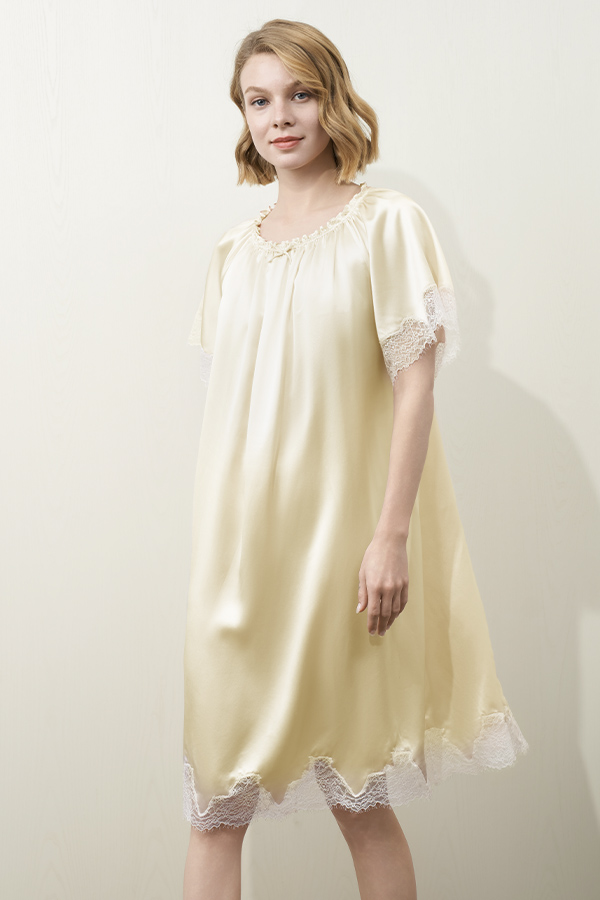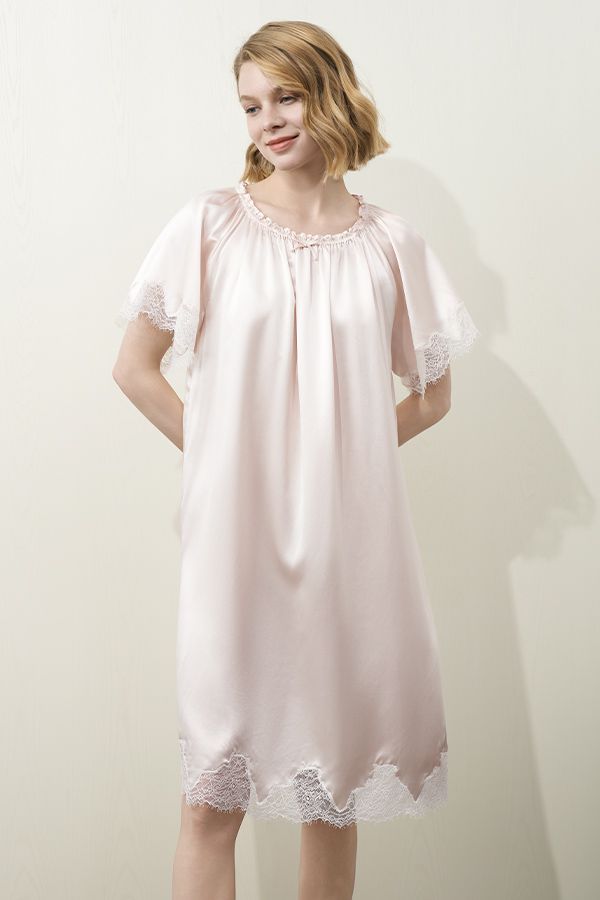 The Luella collection uses gorgeous mulberry silk fabrics with sexy lace, making the details exquisite. The pleated design on the chest cleverly accommodates different body shapes, and makes the dress flowing with the body moving.