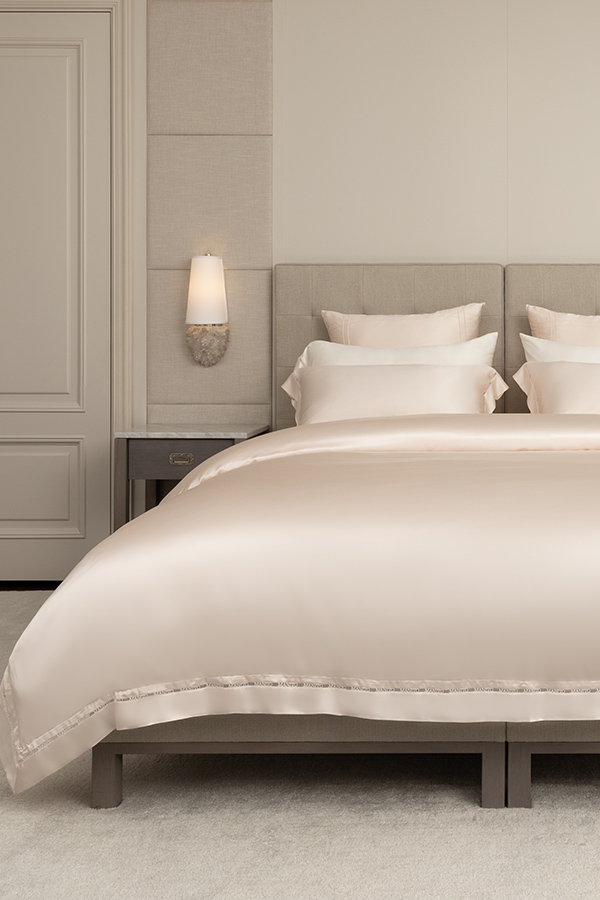 MANITO New Aqua collection is a brand new upgrade of the Aqua collection. The meticulously selected premium silk fabric is luxuriously soft. From raw silk to the finished product, every sewing and cutting detail is done with care to create a skin-friendly bedding set, integrating the brand DNA into the exquisite embroidery lace.