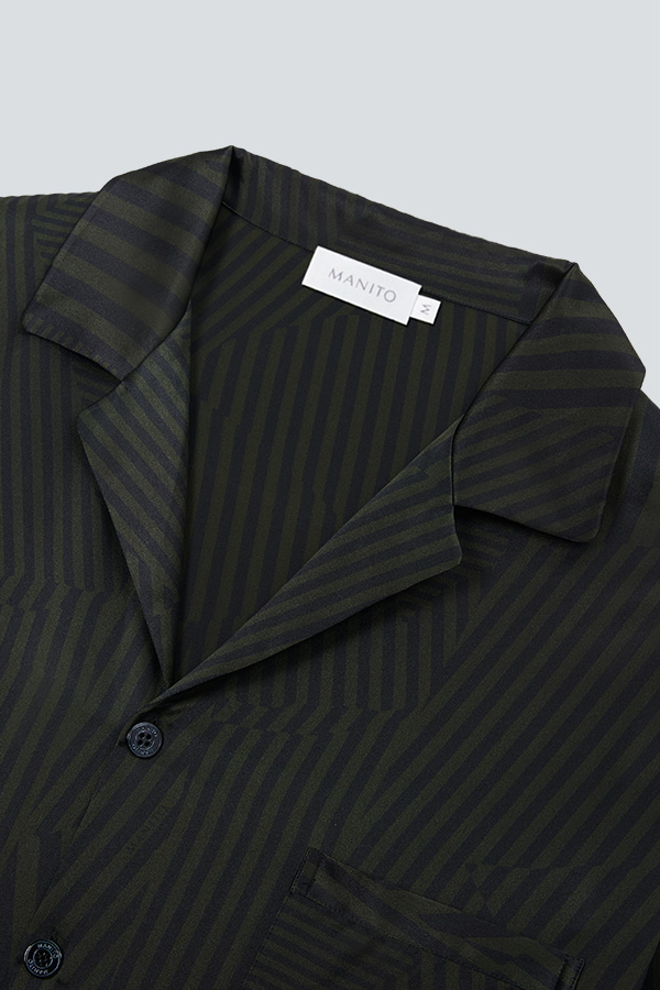 The classic fit with stripe design is simple and stylish. The geometric line print reflects urban prosperity.