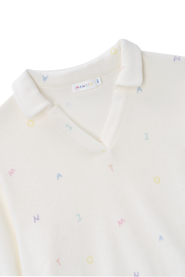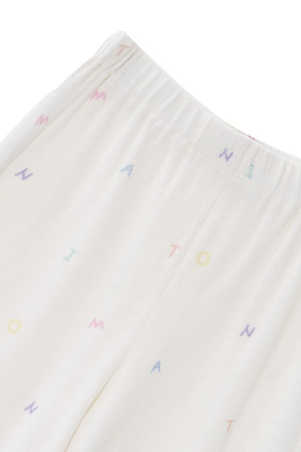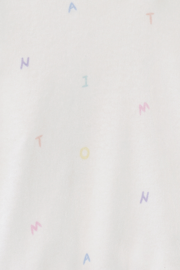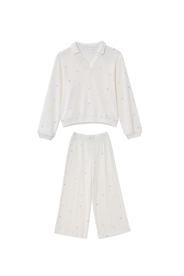 In soft cloud-white, this knit loungewear offers a plush, skin-friendly feel. Cheerful rainbow lettering adds a playful touch, bringing all-day softness and joy.