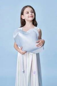 The Ocean Blue kid’s pillows feature vibrant marine animal shapes, (etc.mantas, whaless), bringing a playful experience to your baby’s sleep and the wonders of the ocean to their world. This design fosters imagination and exploration in young minds. Crafted from 22 momme mulberry silk, soft and skin-friendly, protects your baby’s skin.