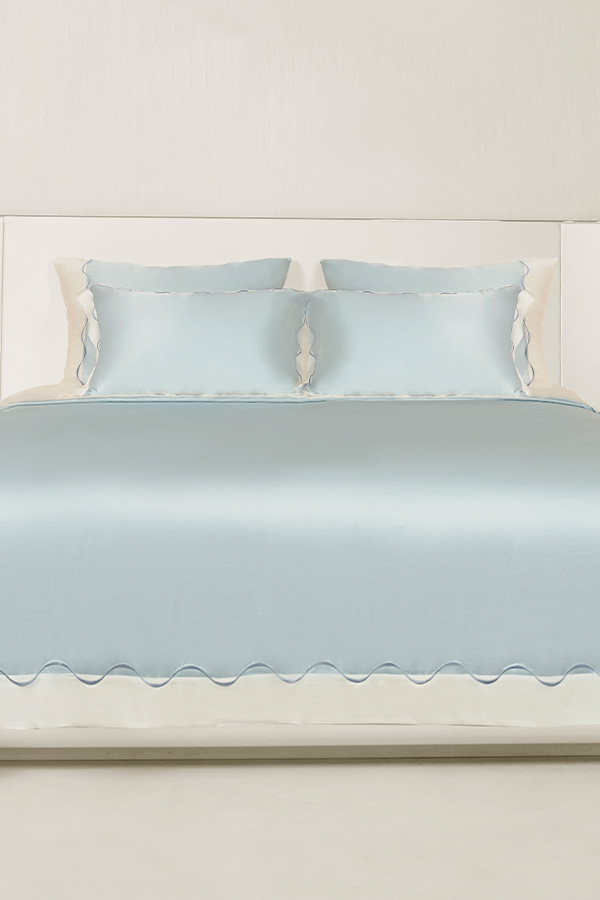 Crafted in liquid-smooth mulberry silk, Ocean Wave Collection drapes with fluid elegance and subtle structure. This fitted sheet set features delicate wave-like stitching along the edges, creating a soft and fluid aesthetic. The refined details and comfortable texture transform your bedroom into a peaceful retreat for restful sleep.