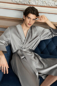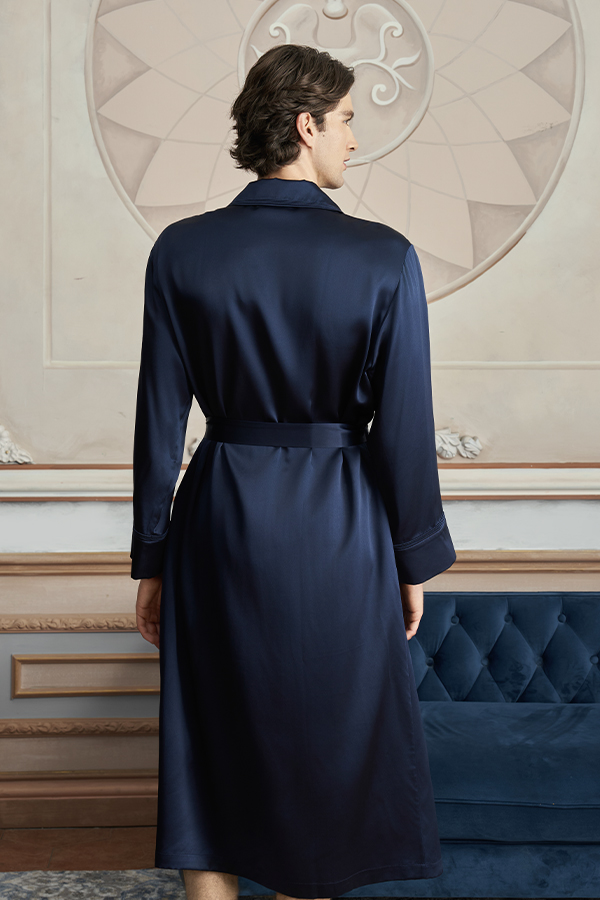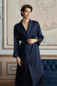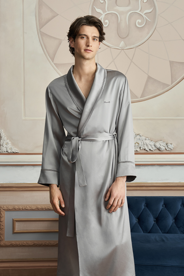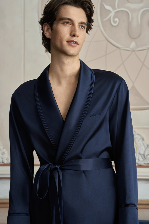Experience meticulous craftsmanship in this men’s robe, designed for modern elegance. Its versatile silhouette, featuring a adjustable belt, transitions seamlessly from relaxed to refined. Made from plush silk crepe satin, the fabric offers a breathable, luminous feel for ultimate comfort.