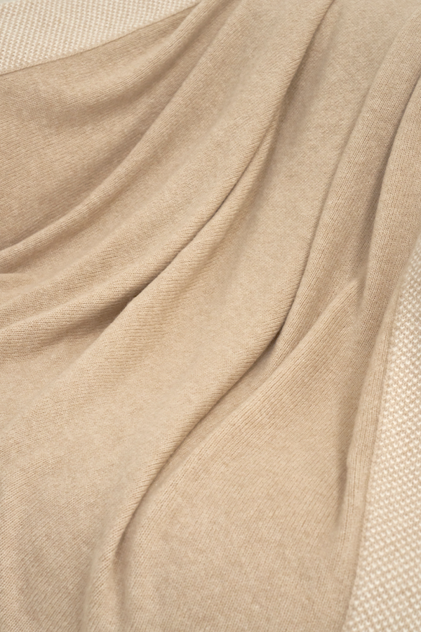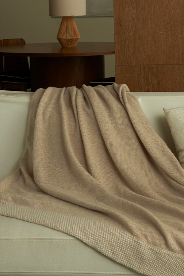 Woven in a golden ratio of cashmere’s warmth and silk’s smoothness, this knit throw becomes a breathable and gentle companion. Its sand camel tone resembles a desert at dusk, while the dense texture conceals cashmere’s soft embrace and silk’s cool whisper. Whether during an afternoon nap or late-night reading, it responds with just the right warmth to the touch—more than a home accessory, it’s a soft solace for the modern life against rush and noise.