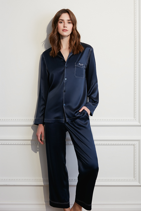 The classic design and cut continue MANITO’s brand-defining elegance. Exquisite crystal-like buttons embellish the chest for added flair and sparkle to show a sense of sophistication. The collar has a rounded natural curve and hand-rolled edges add more detail.