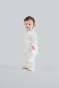 The Signature Baby Romper uses grade 6A mulberry silk, gently cares for the delicate skin. This romper is playfully practical with shirt collars and an easy-to-wear design. With loving care for your baby, MANITO offers stylish, fun, and functional wear.