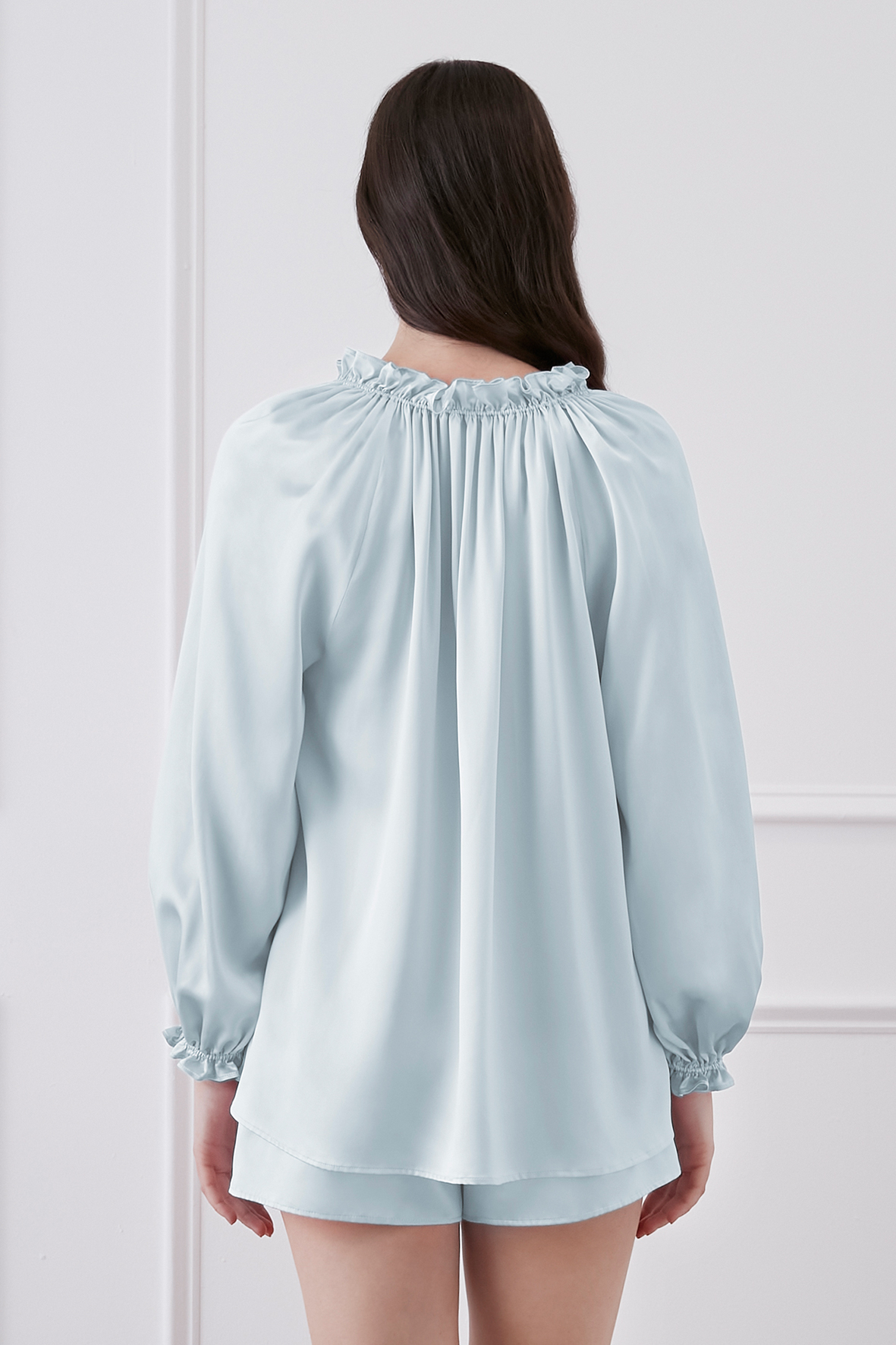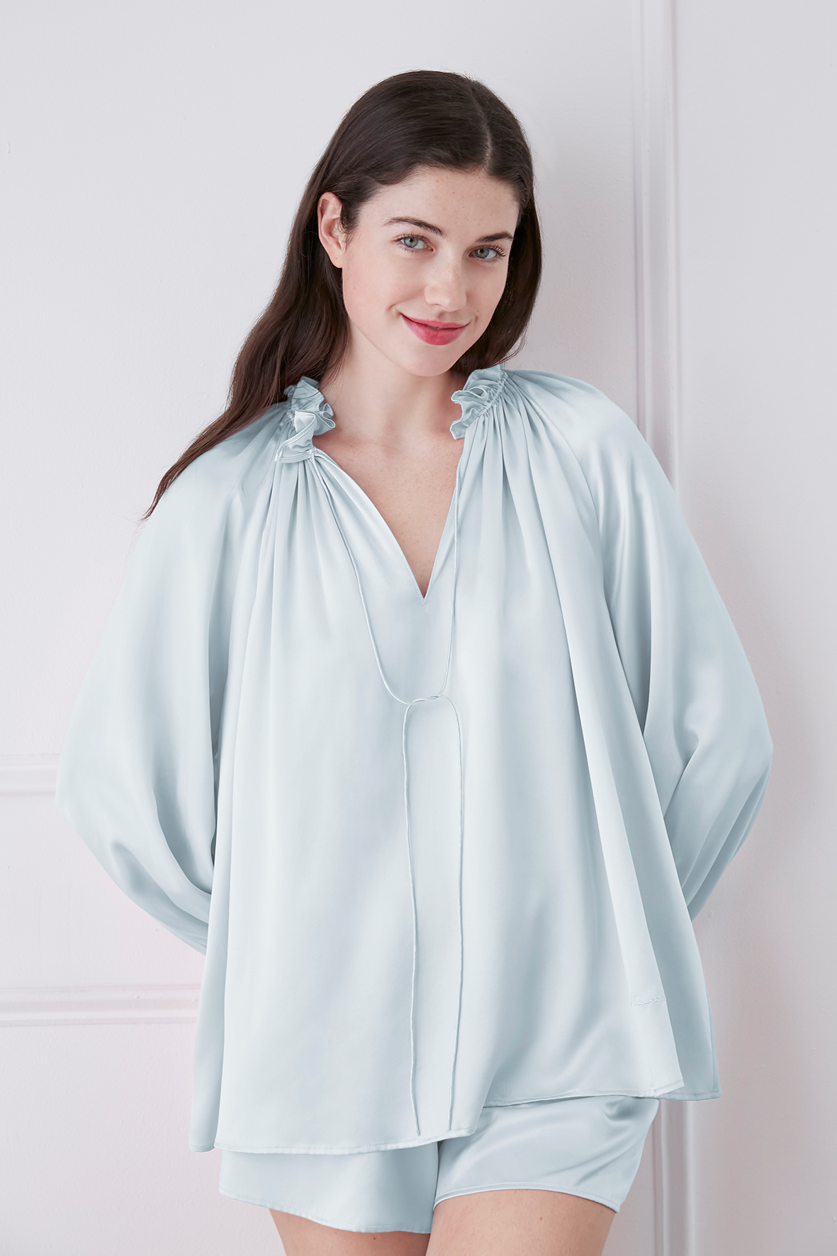 The MANITO Sophia Collection draws inspiration from the sleepwear worn by Princess Louise during the late 18th century Victorian era. The collection features ruffle trim and lantern sleeves, blending playfulness and elegance, and an ultra-loose fit provides extreme comfort and accommodates various body types.
